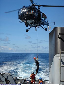 Après ces quelques jours de mer, le bâtiment mouille à l’île inhabitée de Eiao le 19 juin afin d’y récupérer une équipe d’archéologues déposée deux mois plus tôt par le Prairial. Après une nuit passée au mouillage, La Railleuse fait à nouveau escale à Nuku Hiva le 20 juin pour débarquer l’équipe d’archéologues, puis mouille dans la baie des vierges de Fatu Hiva le 21 juin, avant de retrouver Papeete le 25 juin. Le 19 juillet, La Railleuse repart pour un entraînement individuel de trois jours au large des îles de Tahiti et de Moorea, comprenant un exercice de transfert de courrier et un hélitreuillage avec l’Alouette 3 du Prairial, et des mouillages en baie de Cook et en baie d’Opunohu au nord de Moorea. Mission de surveillance maritime (août 2010) Le 27 juillet, La Railleuse reprend la mer, cap sur l’archipel des Gambier, et fait une première relâche à Mangareva du 30 juillet au 1er août. Alors que le patrouilleur se dirige vers Pitcairn pour une escale de routine, le commandant reçoit une demande urgente d’évacuation sanitaire pour deux habitants dont l’un est dans un état préoccupant. L'escale se transforme immédiatement en mission de secours. La Railleuse mouille devant Pitcairn le 2 août, mais des creux de deux mètres rendent l’embarquement des blessés difficiles, mais possible grâce à l’adresse des îliens et l’organisation des marins combinées. Ces derniers seront finalement pris en charge par une équipe médicale à Mangareva vingt heures plus tard. Le commandant décide ensuite de relâcher à Moruroa du 4 août au 6 août, où une journée de cohésion est organisée avec le détachement de l’armée de terre en charge de la surveillance du site. La Railleuse bénéficiera également d’une escale du Revi pour ravitailler.