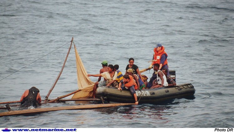 Récupération de naufragés au large de Nosy-Bé (Madagascar) par l'équipage du patrouilleur