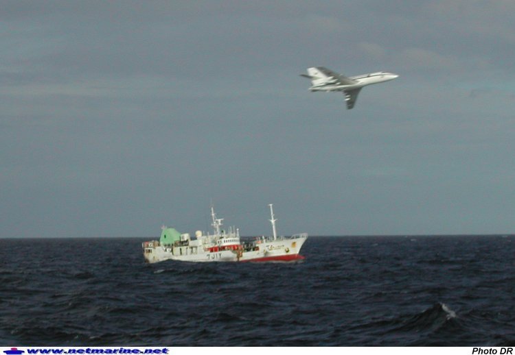 , en action de pêche illicite, avant son arraisonnement par le patrouilleur