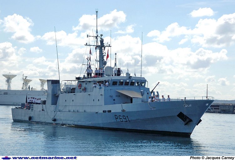 Le patrouilleur La Tapageuse à son arrivée à Brest, où il va désarmer (30 juillet 2012).