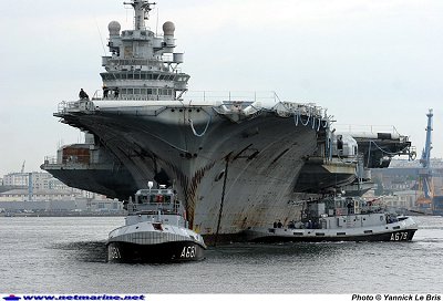 Début 2008, seuls trois groupes ont officiellement annoncé avoir déposé une candidature. Veolia Propreté, qui souhaite renforcer ses activités dans le recyclage, annonce la création d'une filière de démantèlement à Bordeaux. Suez, de son côté, menera à bien la destruction et le retraitement du Lucifer (ex-corvette La Découverte) à Cherbourg. Enfin, Galloo, qui s'est vu confié l'an passé le traitement du transport de chalands de débarquement anglais Fearless, dispose déjà d'une expérience dans le démantèlement de navires militaires à Gand, en Belgique. Mais c'est en fait un concurent surprise qui emporte le marché, puisque le 1er juillet, le ministère de la Défense annonce que le marché est notifié à la société britannique Able UK Ltd dont le chantier se situe sur la rivière Tees au nord-est de l’Angleterre L'opération sera effectuée à Hartepool au nord-est de l'Angleterre.2009 Au regard des conditions météorologiques et de marée favorables, la coque du Q 790 (ex-Clemenceau) quitte Brest le 3 février 2009, remorqué par les moyens nautiques de la base navale. Il est ensuite remis au remorqueur océanique Anglian Earl qui le remorque jusqu'à Hartlepool en Grande-Bretagne, où il arrive quatre jours après. Le retrait de l'amiante débute en avril 2009, et nécessite jusqu'à 80 techniciens spécialisés. La mi-novembre marque le début de la découpe de la coque du Q 790. Le site d'Hartepool a été spécialement aménagé pour le démantèlement des navires. Il dispose d'une darse longue de 360 mètres pour une largeur de 290 mètres. D'une profondeur de 15 mètres, ce bassin s'étale sur 10 hectares. Creusée dans les années 70 pour pouvoir accueillir des plateformes offshores, , elle accueille non seulement l'ex-Clemenceau, mais aussi quatre anciens bâtiments logistiques de l'US Navy, ainsi que deux bateaux britanniques désarmés. Le découpage du nez du porte-avions réalisé entre le 16 et le 22 novembre aboutit à une certitude : la coque Q 790 ne pourra plus être remorquée. 2010 Le 6 février, un incendie se déclare à bord de l‘ex-porte-avions Clemenceau, en cours de démantèlement sur le site d‘Able UK, près d'Hartlepool. Plus de 50 pompiers sont appelés pour lutter contre le feu qui sera maîtrisé. Net-Marine © 2010. Copie et usage : cf. droits d'utilisation.