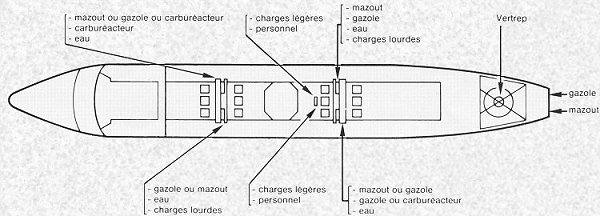 (1,7 t). Les transferts se font par manches (hydrocarbures) ou chariot