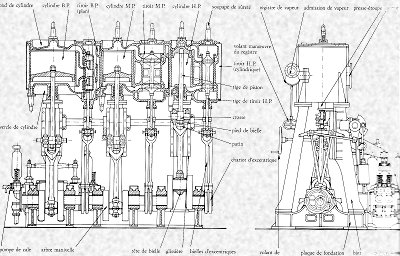 au charbon. Machine vapeur à triple expansion. |