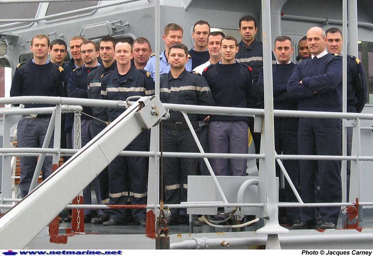 aux cotés de son commandant le lieutenant de vaisseau Didier Gourtay à Brest (17 février 2005).