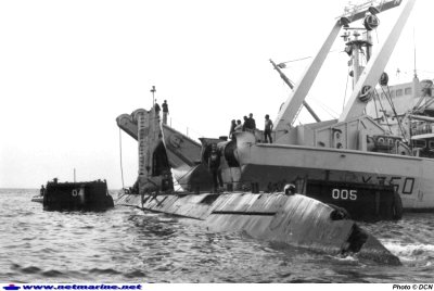 Il est mis sur cale à la mi-1956 et lancé le 12 septembre 1958. Après la prise d'armement, une série d'essais a lieu au cours de l'année 1959. Le 27 mars il est de retour d'essais entre Brest et Lorient, et rentre à Cherbourg. Le 24 octobre 1959, il quitte Cherbourg à la fin de son armement pour effectuer sa tournée d'endurance. Cette croisière le mène d'abord en mer du Nord où il visite les ports de Wilhemshafen et de Bergen (Norvège). Puis, après un bref retour à Cherbourg, il rallie Toulon au début décembre. Il entre en service le 16 mars 1960, date à laquelle il est affecté à la 1ère escadrille de sous-marins (ESM).