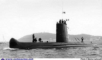 Il effectue ses essais en 1959, marqués par une croisière d'endurance de la mer du Nord (Norvège), en Atlantique puis Méditerranée. Il entre en service le 16 mars 1960, date à laquelle il est affecté à la 1ère escadrille de sous-marins (ESM) à Mers el-Kébir. Après être resté un an dans le port algérien, il rentre à Toulon en 1962.