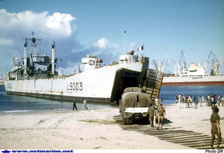 lors d'un embarquement de véhicules à Diego Suarez (1973 - Photo CF Jean-Claude Denier).