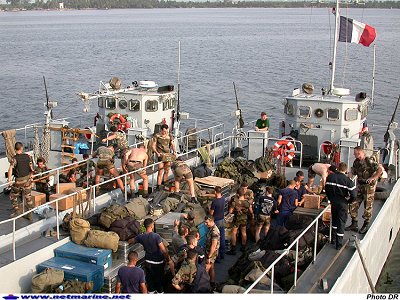 au sein de la force Licorne au large d'Abidjan en appui des troupes françaises