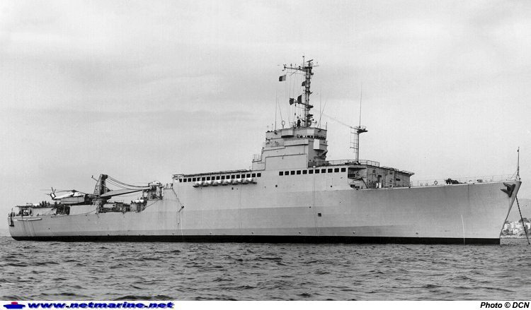 , alors en essais, fait escale au mouillage à Toulon (9 février 1968). Remarquez l'absence de numéro d'identification sur sa coque.