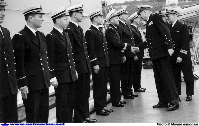 L'amiral AMMAN vient à bord. Le CF de CHAMPVALLINS, accompagné