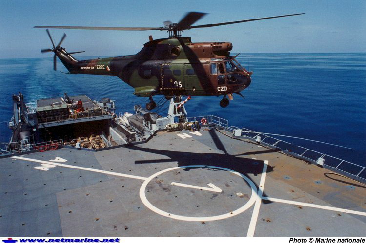 Appontage d'un hélicoptère Puma de l'ALAT sur le TCD
