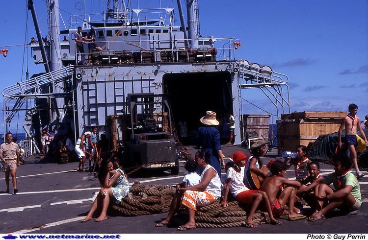 C'est la fin des vacances. Les enfants des Marquises vont à Papeete pour la rentrée scolaire à bord du bâtiment de débarquement de chars (BDC)