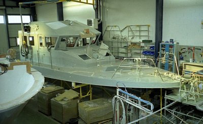 en main au profit des équipages. Le potentiel du chantier CNB, permet la construction de trois VCSM en même temps. Dès qu’une vedette est mise à l’eau, le moulage de l’exemplaire suivant débute. La production est ininterrompue hormis durant la période de congés du mois d’août. La fréquence est la livraison d’une vedette toutes les 6 semaines (8 par an). Durant le programme la production a pris de l’avance, ce qui a permis d’insérer la fabrication de plusieurs modèles destinés à l’exportation. Eric Giboint pour Net-Marine © 2009. Copie et usage : cf. droits d'utilisation.