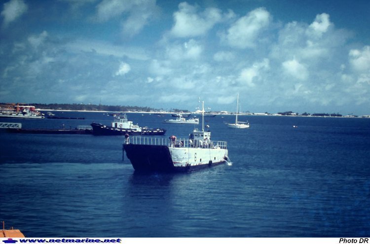 . En arrière-plan lointain, on aperçoit le chaland releveur d'ancrages