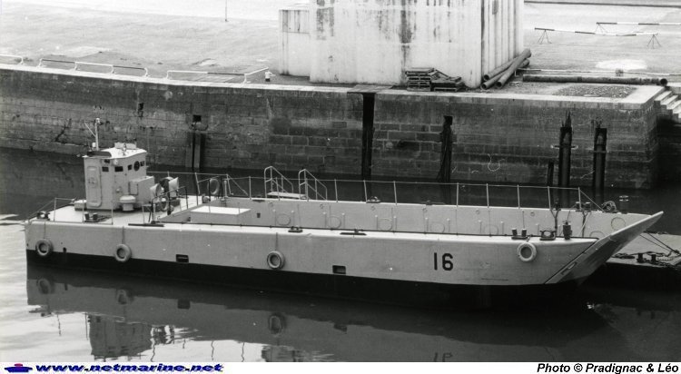 amarré en Penfeld. On peut noter qu'il ne dispose pas de mature rabattable mais d'un matereau sur lequel sont montés les feux réglementaires de navigation (15 juillet 1973).