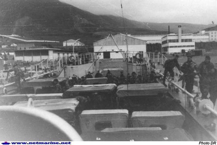 embarquant à Mers-El-Kébir des troupes et des véhicules (mai 1963 - photo Gérard Diébold).