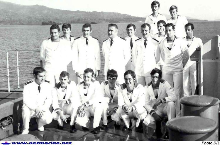 autour de son commandant, le maitre principal Montfort (1976 - photo Philippe Fillaudeau).