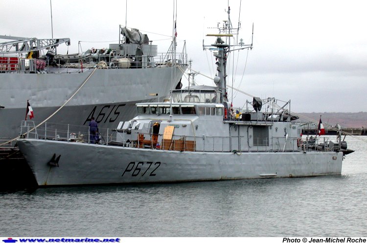 en carénage à Brest. Un radar Furuno vient d'être installé sous le traditionnnel Decca RM 1226C (20 janvier 2004).