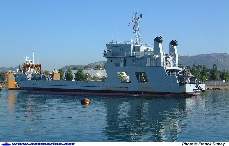 manoeuvrant dans la darse du port du Brégaillon pour quitter le chantier