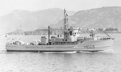 - Un dragueur de mines de type YMS, lancé le 11 avril 1942 aux chantiers Greenport Basin and Construction Co à Long Island aux Etats-Unis. Armé de 3 canons dont 1 de 76 mm et 2 de 20mm, son déplacement est de 280 tonnes pour une puissance motrice de 1000CV. Admis au service actif le 2 octobre 1944 et officiellement désigné D335, il est affecté à Toulon puis transféré en Indochine à partir de décembre 1945. Baptisé Jasmin, il rallie Brest en 1950 puis Djibouti en 1955. Stationnaire dans le territoire français des Afars et des Issas, Jasmin accomplit ses missions jusqu'au désarmement intervenant le 6 février 1962 puis la condamnation le 5 juin 1963 sous le numéro Q338.