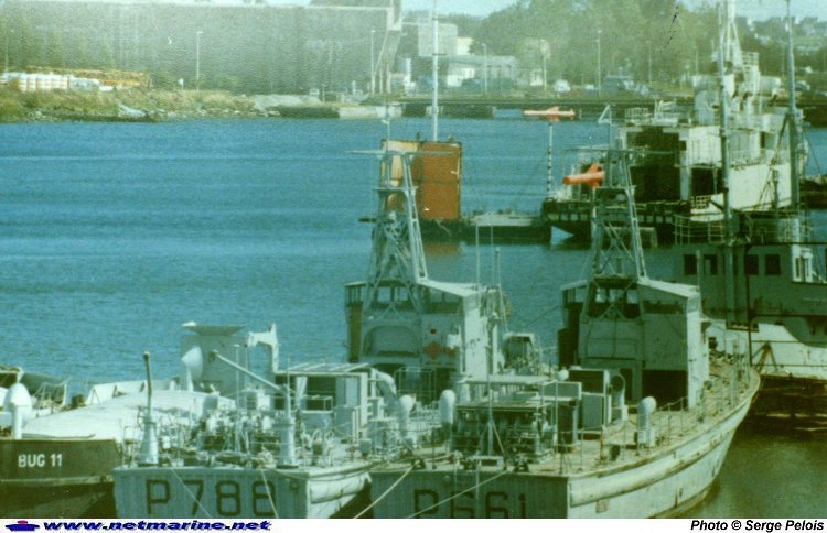 au fond de l'arsenal de Lorient. En arrière-plan, on aperçoit l'ancien bâtiment d'intervention sous la mer