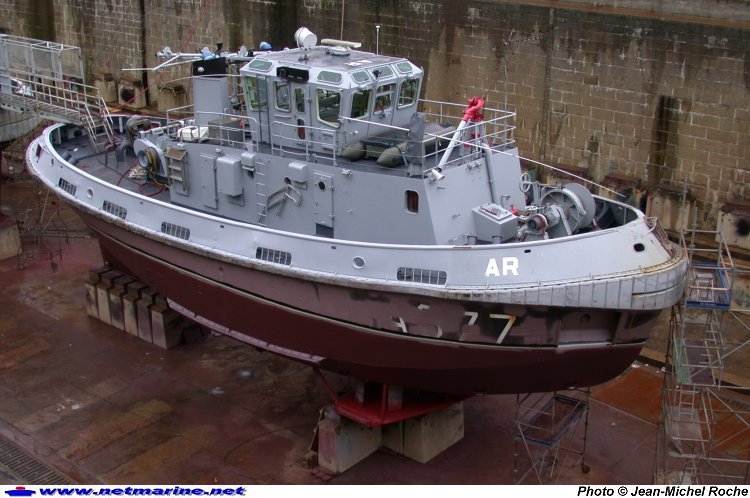 lors d'un arrêt technique avec passage au bassin. Cette vue permet de distinguer la taille importante du propulseur