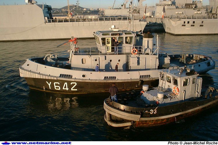 et son petit frêre, le pousseur-remorqueur de port n°33, à Toulon (27 janvier 2000).