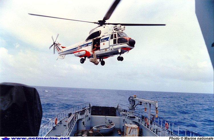 de la DIRCEN (Direction des Centres d'Expérimentations Nucléaires) en hélitreuillage dans le Pacifique avec l'EDIC