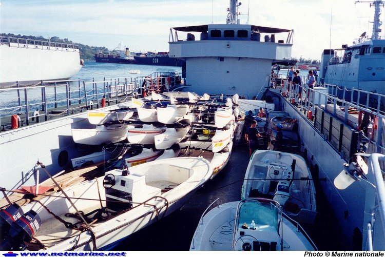 transporte les bateaux de l'école de voile d'Arue de Papeete jusqu'à Tahaa (juillet 1996).