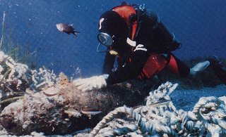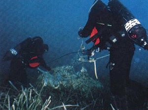 Des plongeurs démineurs en action (par le SM plongeur-démineur Dupont - d'après Armées d'aujourd'hui n°233, septembre 1998 ; photos Marine nationale)