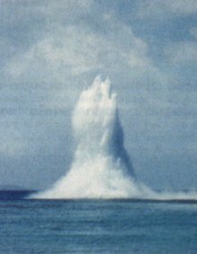 de la Seconde Guerre mondiale gît devant nous. Trente minutes plus tard, la nouvelle équipe est prête. Un cercle de sécurité de trois mille mètres de rayon est requis pour cette mine contenant une tonne d' explosif. Les diffusions se succèdent sur la VHF. Le compte à rebours commence 5, 4, 3, 2, 1... Feu . Un quart de tour de poignée de l'exploseur et une détonation sourde se répercute dans tout le bâtiment. Une puissance extraordinaire projette l'eau jusqu'à quarante mètres de hauteur en une gerbe magnifique. Le score de 26 mines de fonds, contre-minées en Manche en 1997, ne sera sans doute pas facile à battre. Mais quel plaisir et quelle fierté d'avoir participé, dans les règles de l'art à la destruction de la 7e mine de 1998. |