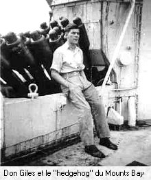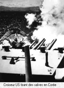 à grande vitesse la poupe du Missouri disparut rapidement derrière l'horizon... "Bien plus tard, écrivait mon excellent ami Don Giles en 1996, des recherches effectuées auprès des marines Nord-Coréenne et de son alliée Chinoise montrèrent qu'aucune n'avait développé de capacités sous-marines à cette époque, mais que des pays communistes sympathisants en possédaient celà ne fait pas de doute. Maintenant que la Guerre Froide est terminée et que le Rideau de Fer est détruit, peut-être nous sera-t-il révèlé un jour s'il y a eu vraiment une activité soumarine dans et aux alentours de la Mer Jaune à cette époque. Les routes de nos bateaux et celle d'un sous-marin "inamical" se sont-elles croisées et si oui, a-t-il pu s'en retourner sans dommage? Repensant à ces évènements après tant d'années, nous espèrons qu'il en fut bien ainsi et que, avec le temps, ils aient pu trouver un mouillage sûr pour y vivre leur vie dans la plénitude de la paix..." Mais des signes d'activité ennemie sur la côte avaient été remarquées par les bateaux de l'écran et des observations plus poussées montrèrent que des éléments de la "In Min Gun" (Armée Populaire Nord-Coréenne) étaient en train de construire des emplacements de batteries côtières. Il fut un moment envisagé d'aller supprimer la menace par une opération de compagnie de débarquement mais le bon sens l'emporta et c'est la solution du canonnage naval qui prévalut. C'est encore le Mounts Bay qui voulut se distinguer, laissant les autres de corvée et négligeant le Français qui avait pourtant l'artillerie la plus puissante du groupe. Enfin...