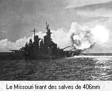 USS Missouri BB63 qui demanda par signaux lumineux (le silence radio