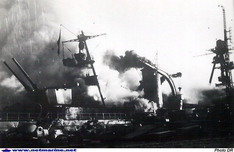Sabordage de la Flotte : Le Dupleix (27 novembre 1942 - collection Francis Rocchi).