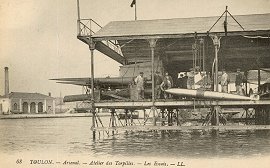 La fonction essentielle de l'arsenal n'est donc plus la construction mais l'entretien d'une puissante flotte qui ne cesse de se moderniser. Le passage de Georges Leygues au ministère de la Marine sera décisif : avec lui, la Marine française rentre de plain pied dans le XXème siècle alors que l'on commence, à Toulon, à construire les appontements Milhaud. Mais, avec l'entrée dans le XXème siècle, les risques d'incidents technologiques se multiplient. Les poudres explosent trop facilement. De 1899 à 1910 une série de drames endeuille l'arsenal ; malgré cela, le prestige de la Marine n'est pas atteint. 4 septembre 1911, Armand Fallières, le Président de la République, passe en revue la Flotte : 92 navires arborent fièrement le pavillon national. La Marine française est alors la seconde au monde. Elle s'est modernisée. De nouvelles technologies font leur apparition : torpilles au Mourillon, radiotélégraphie, naissance de l'aéronautique navale, etc... De 1918 à 1939, Toulon reste le centre névralgique de la défense de l'Empire d'Outre-mer. Depuis 1936, Saint-Mandrier forme tous les apprentis mécaniciens de la Flotte. C'est le temps de Toulon la coloniale, porte de l'Empire, d'où partent les convois vers Oran, Bizerte, Mers-El-Kébir, Saigon ou Shanghaï... Images de cartes postales qui restent dans les mémoires d'un Pierre Loti ou d'un Claude Farrère... Temps immuables jusqu'au coup de tonnerre de 1939. DE LA RECONSTRUCTION À NOS JOURS