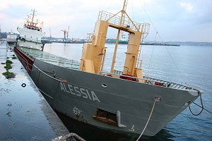 le cargo suisse Alessia. Ce cargo de 95 m de long, qui se trouvait à 45