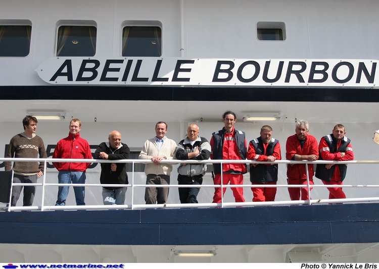 , réuni autour de son commandant Charles Claden, à l'arrivée du navire à Brest (8 avril 2005).