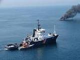 (Golfe de Sagone) en Corse. Le navire laisse échapper du gazole et de l'huile