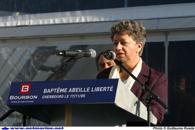 La marraine de l'Abeille Liberté Annie Blanchet, veuve du maître d'équipage de l'Abeille Languedoc décédé dans le cadre de sa mission. (17 novembre 2005).