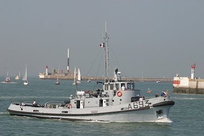 A l'heure des systèmes de navigation intégrés, je gouverne toujours au compas magnétique. La machine, qui brille de mille feux, fait des envieux ; il est vrai que les " Mécanos " me bichonnent et sont aux petits soins avec moi. Ma puissance de remorquage est toujours aussi impressionnante, 17 tonnes au croc. C'est ainsi que ces derniers mois, je faisais partie de l'attelage pour la sortie du SNG Vigilant, en " fléchard " avant. Le sous-marin O'higgins du programme Scorpène Chili m'a également utilisé pour des essais de plongée statique en baie du Becquet ; je suis toujours prêt à donner un coup de main aux pilotes. Mon retrait du service actif est prévu en 2010 ; j'ai encore quelques belles années devant moi à bourlinguer de Chausey à Jobourg , en passant par Lévy, Barfleur, Saint-Vast-la-Hougue, des jolis coins que je ne cesse d'admirer. Mais, je ne serais rien sans le travail effectué par tous les hommes qui ont constitué mon équipage durant ces années : les mécanos, les boscos sans oublier les cuistots. Au hasard de vos promenades sur la côte normande, le dernier des " mille chevaux " vous tapera sûrement à l'œil. (Texte du MJR André Coulloc'h , cdt le RC Acharné de juin 2002 à aout 2004) |