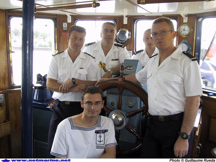 Autour de son commandant, le maître principal Beven, une partie de l'équipage du remorqueur côtier