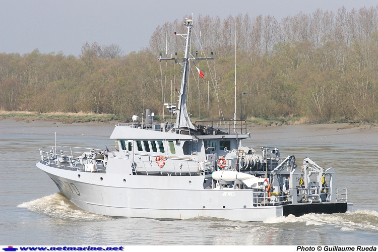 Le Bâtiment Remorqueur de Sonars (BRS) Antares en Seine (mars 2007).