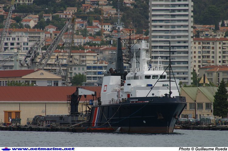 Le bātiment de soutien, de haute mer (BSHM) Carangue à Toulon (16 août 2004).