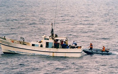 C'est au cours de l'escale du Primauguet et du Cdt L'Herminier à Wilhelmshaven que la Force navale franco-allemande (FNFA) a été activée le lundi 30 août pour une durée de 4 semaines. Commandée cette année par les Allemands, la FNFA est composée des frégates Mecklenburg-Vorpommern et Emden, du pétrolier ravitailleur Spessart, de la frégate Primauguet et de l'aviso Cdt L'Herminier. (Cols Bleus n°2499 du 18 septembre 1999) Au cours de la mission Corrymbe VI, au large de l'Afrique occidentale, le Commandant L'Herminier, alors à quai à Sao-Tomé, reçoit un appel de détresse d'un chalutier qui transbordait des passagers entre Sao Tome et Principe. La plupart des hommes d'équipage sont partis "en brousse" pour visite. C'est avec seulement 35 hommes que le pacha de l'aviso décide d'appareiller. C'est ainsi que 22 personnes sont sauvés.