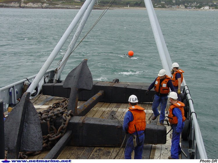au large d'Omonville lors de la remise en place d'un coffre (26 septembre 2005 - Photo BSR