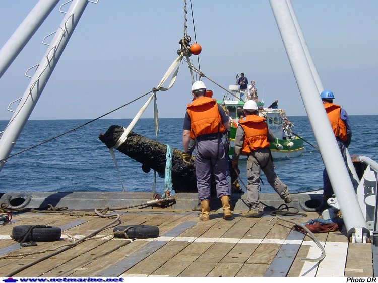 au large de Cherbourg lors de la remontée d'un canon du CSS