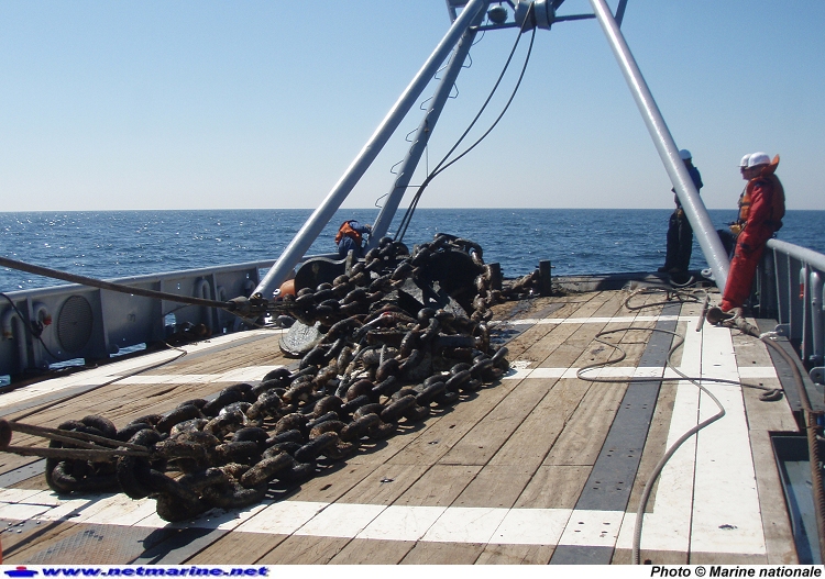au travail lors d'une campagne de relevage d'obstructions au large du Havre (photo BSR Elan juin 2009)