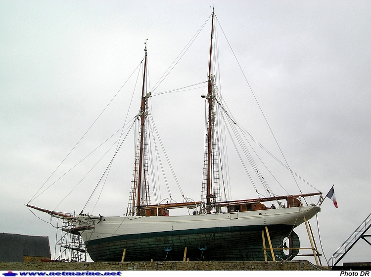 sur le slipway de Camaret quelques heures avant sa remise à l'eau. (23 février 2009 photo Gurwan Jolivet)
