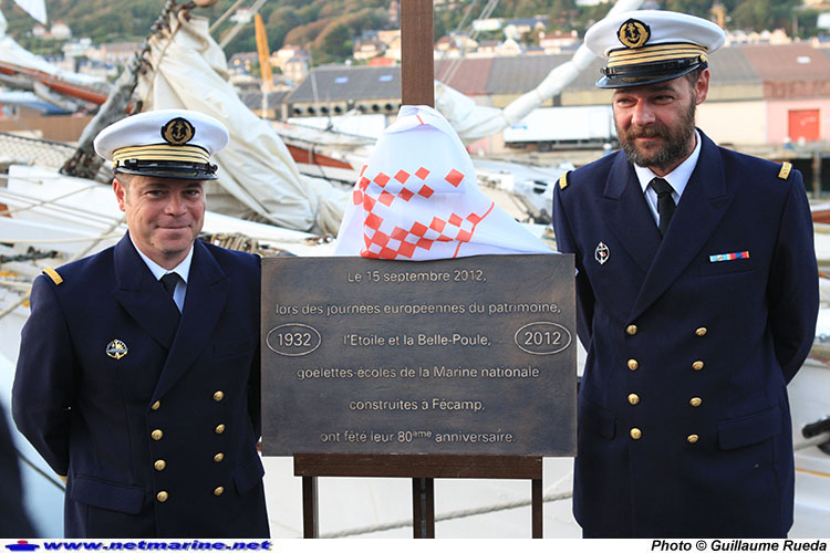 devant la plaque commémorant les 80 ans de leurs lancements à Fécamp (septembre 2012)