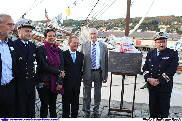Les autorités devant la plaque commémorant les 80 ans du lancement des goélettes